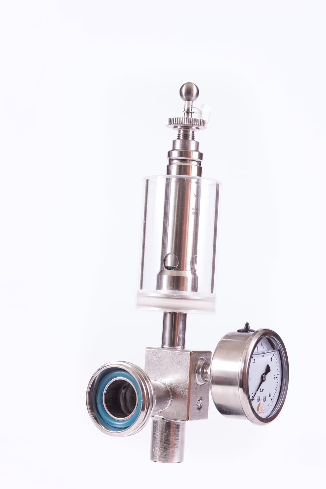 Pojistný hradící přístroj je unikátní tlakové zařízení, které plní současně dvě funkce: Nastavení hradícího tlaku v ležáckém tanku a Pojistný ventil