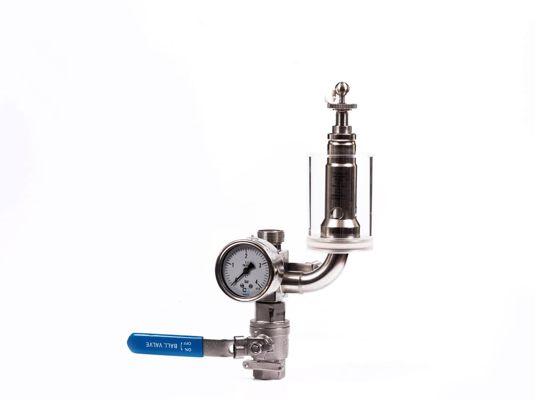 Pojistný hradící přístroj je unikátní tlakové zařízení, které plní současně dvě funkce: Nastavení hradícího tlaku v ležáckém tanku a Pojistný ventil